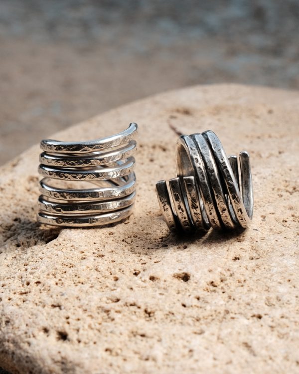 Tres cèrcols entrellaçats que simbolitzen equilibri. Acabat mat i línia senzilla.